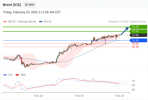 在 71.10 之上,看涨,目标价位为 72.50 ,然后为 73.20 。