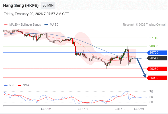 在 26700 之下,看跌,目标价位为 26250 ,然后为 26000 。