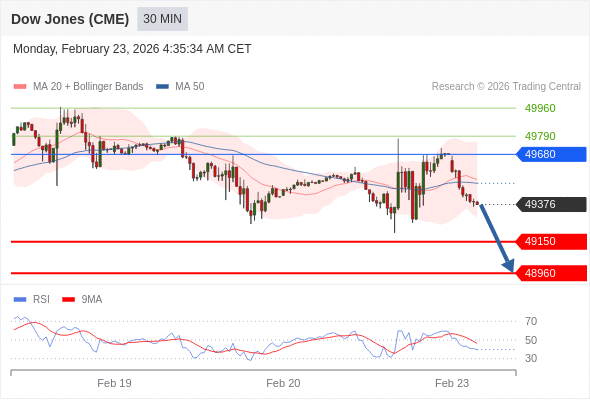 交易策略: 在 49680 之下,看跌,目标价位为 49150 ,然后为 48960 。