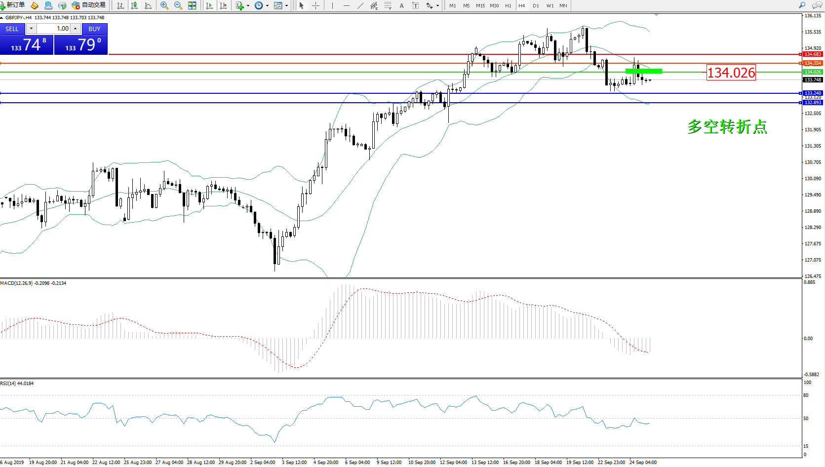 交易策略:134.026下方看跌,目标133.240、132.893