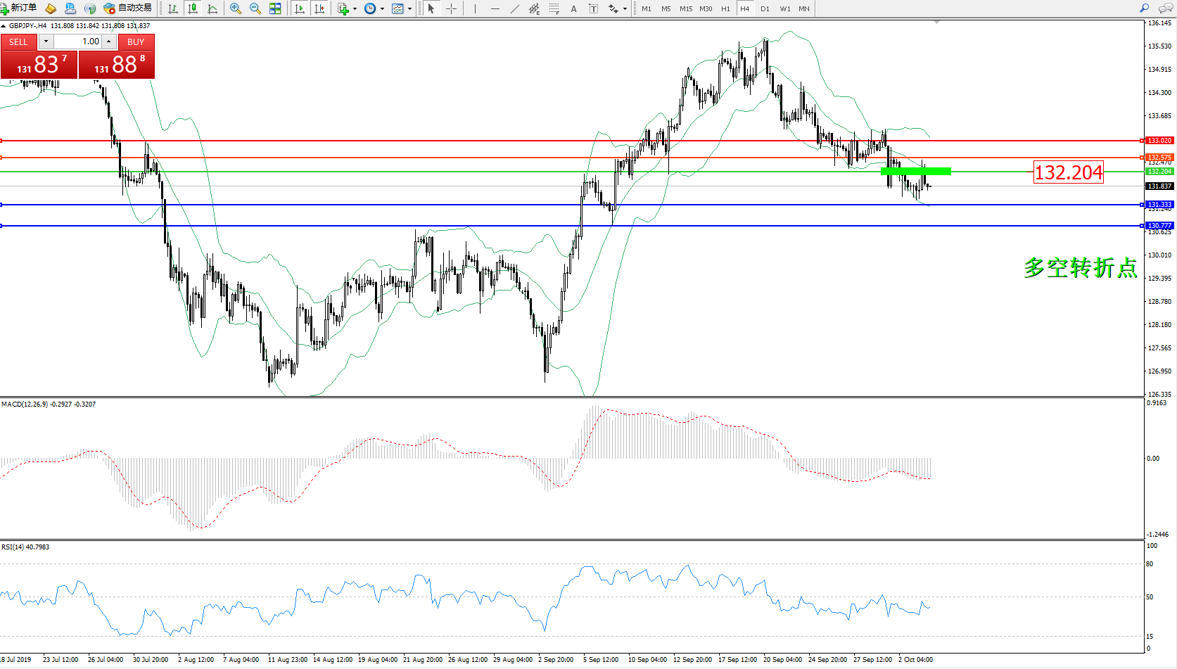 交易策略:132.204下方看跌,目标131.333、130.777