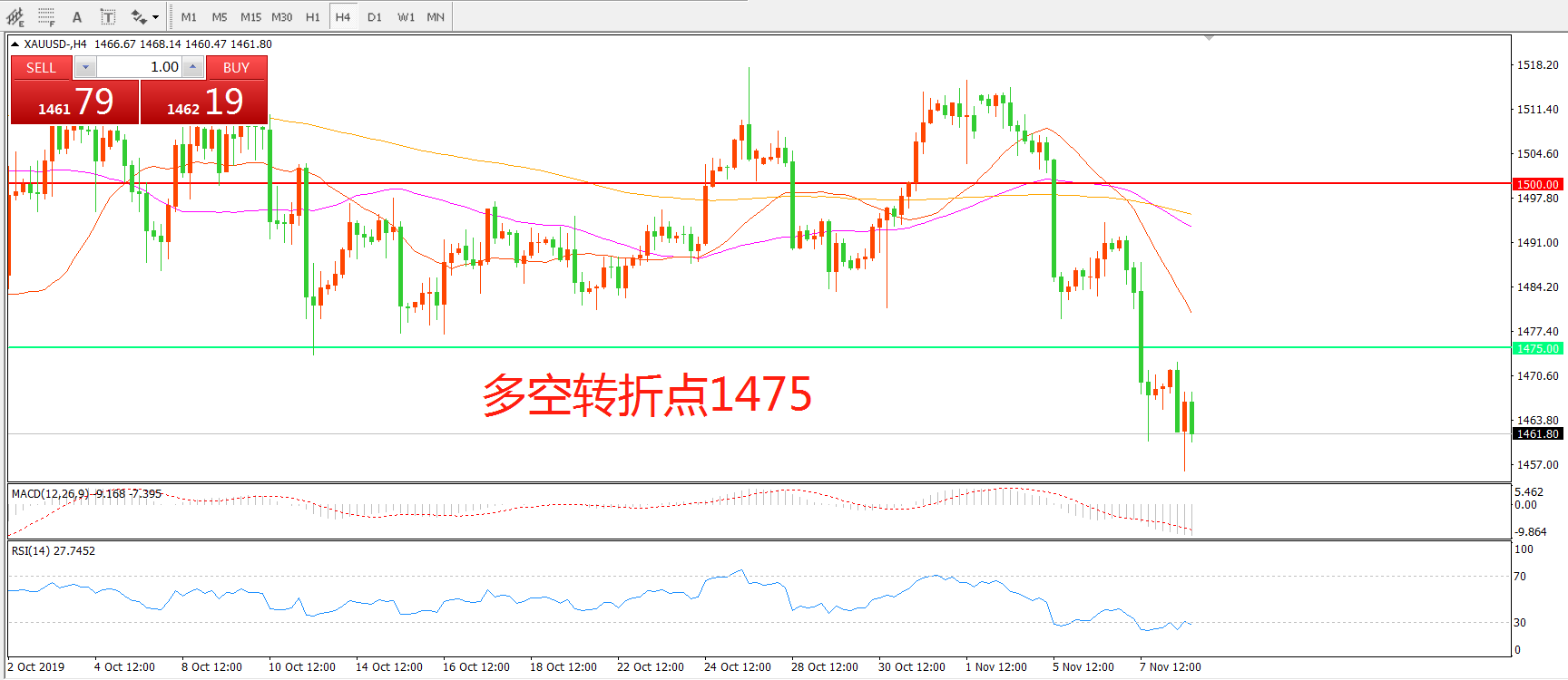 交易策略:在1475.00之下看跌,目标1450.00   1400.00