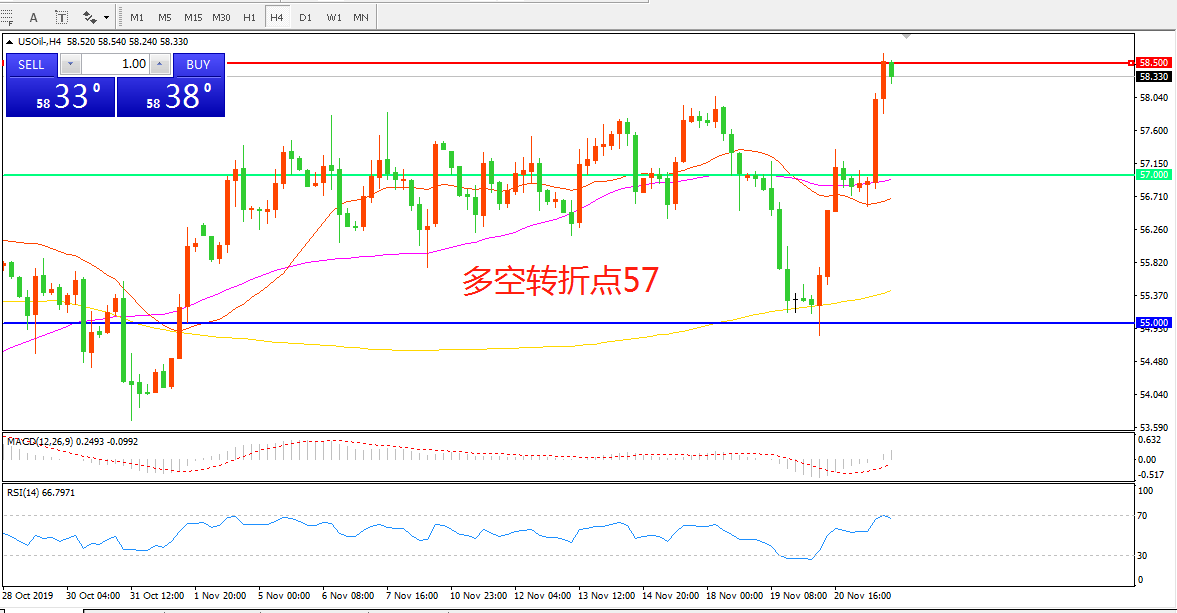 交易策略:在57.00 之上看涨,目标58.50      60.50