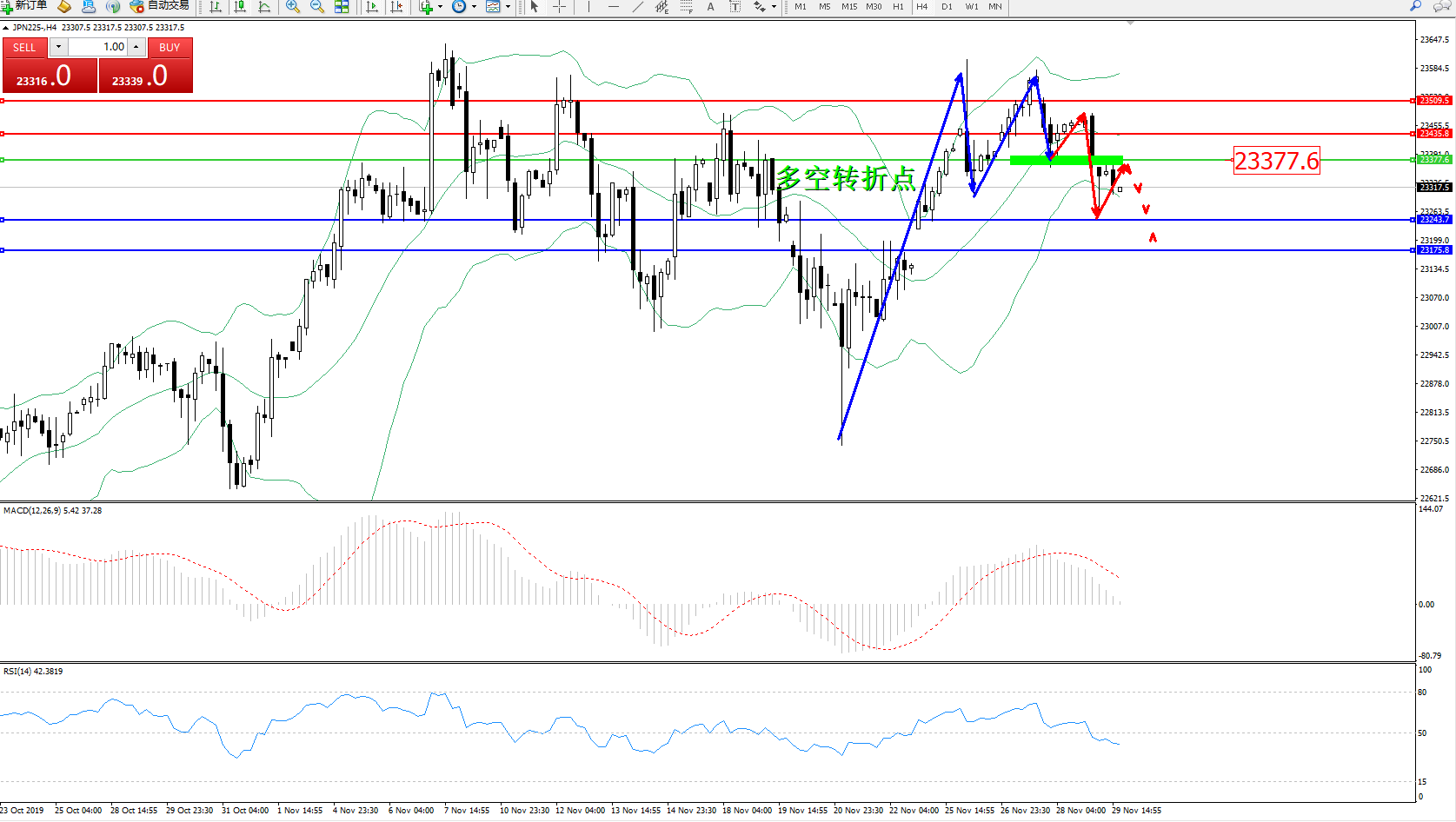 日经225指数1129日(周五)收盘下跌108.64点,跌幅0.46%,报23300.50点。日本经济产业省29日发布报告说,由于汽车、生产用机械等行业受台风影响减产,10月份经季节调整的工矿业生产指数环比下降4.2%98.9,降幅大于预期。在全部15个行业中,当月有12个行业生产指数环比下降,其中汽车行业降幅达7.8%,生产用机械行业下降6.4%。数据还显示,10月份工矿业出货指数环比下降4.3%,库存指数环比上升1.2%。有专家分析说,报告显示生产下滑的同时库存上升,这可能与外需下降有关。此外,前期部分中小企业在增税前提前采购,也是影响10月份数据的原因之一。