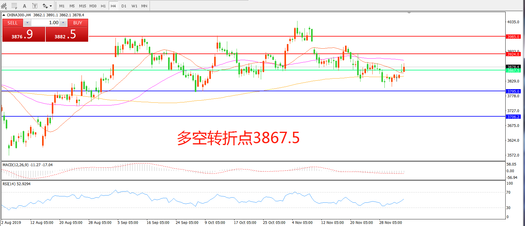 沪深300指数CHINA300 4小时图
