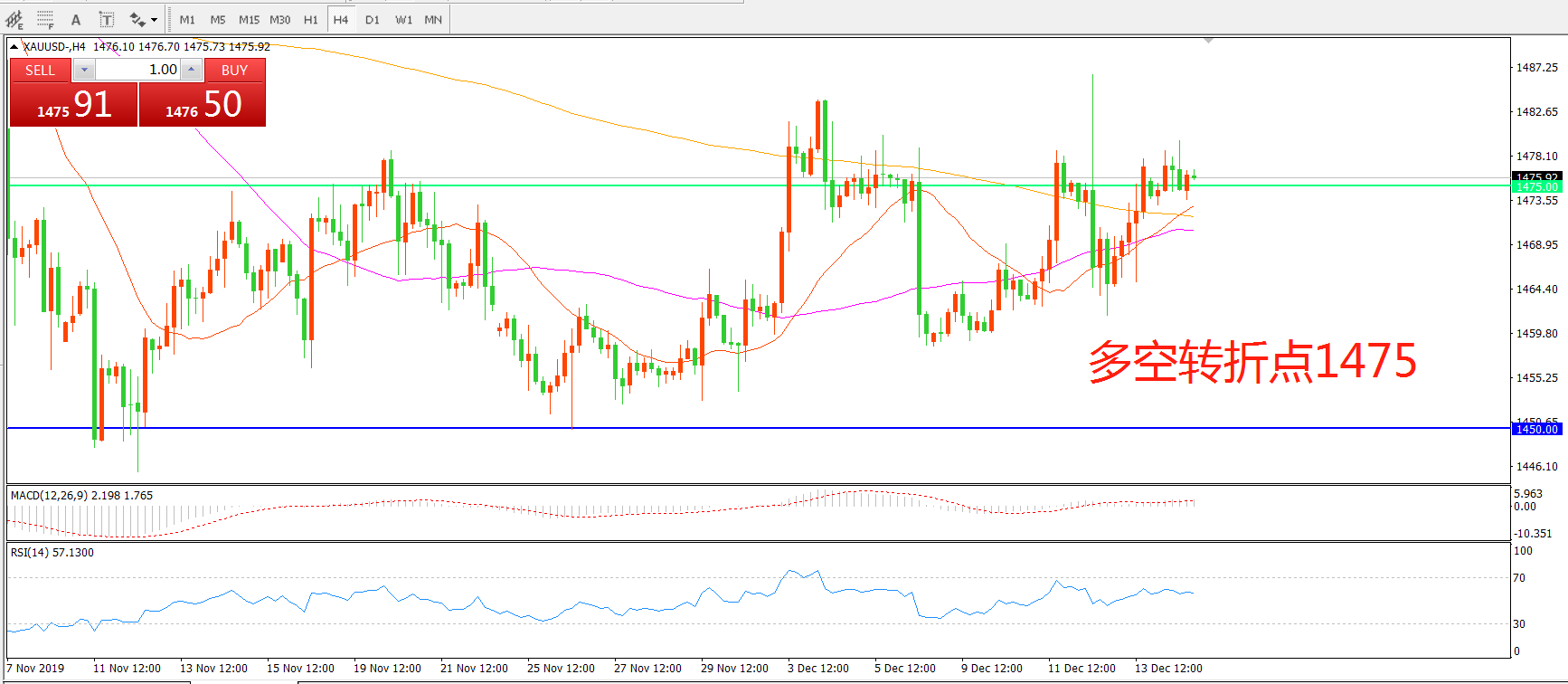 多空转折点:1475.00