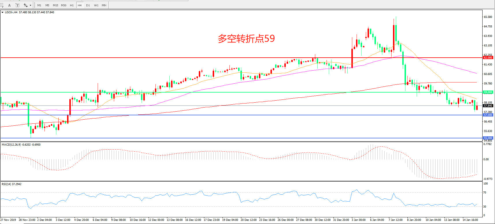 交易策略: 在59.00之下看跌,目标57.00       55.00