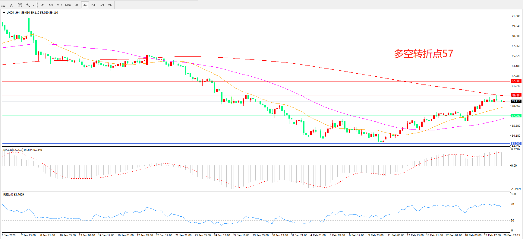 多空转折点:57.00