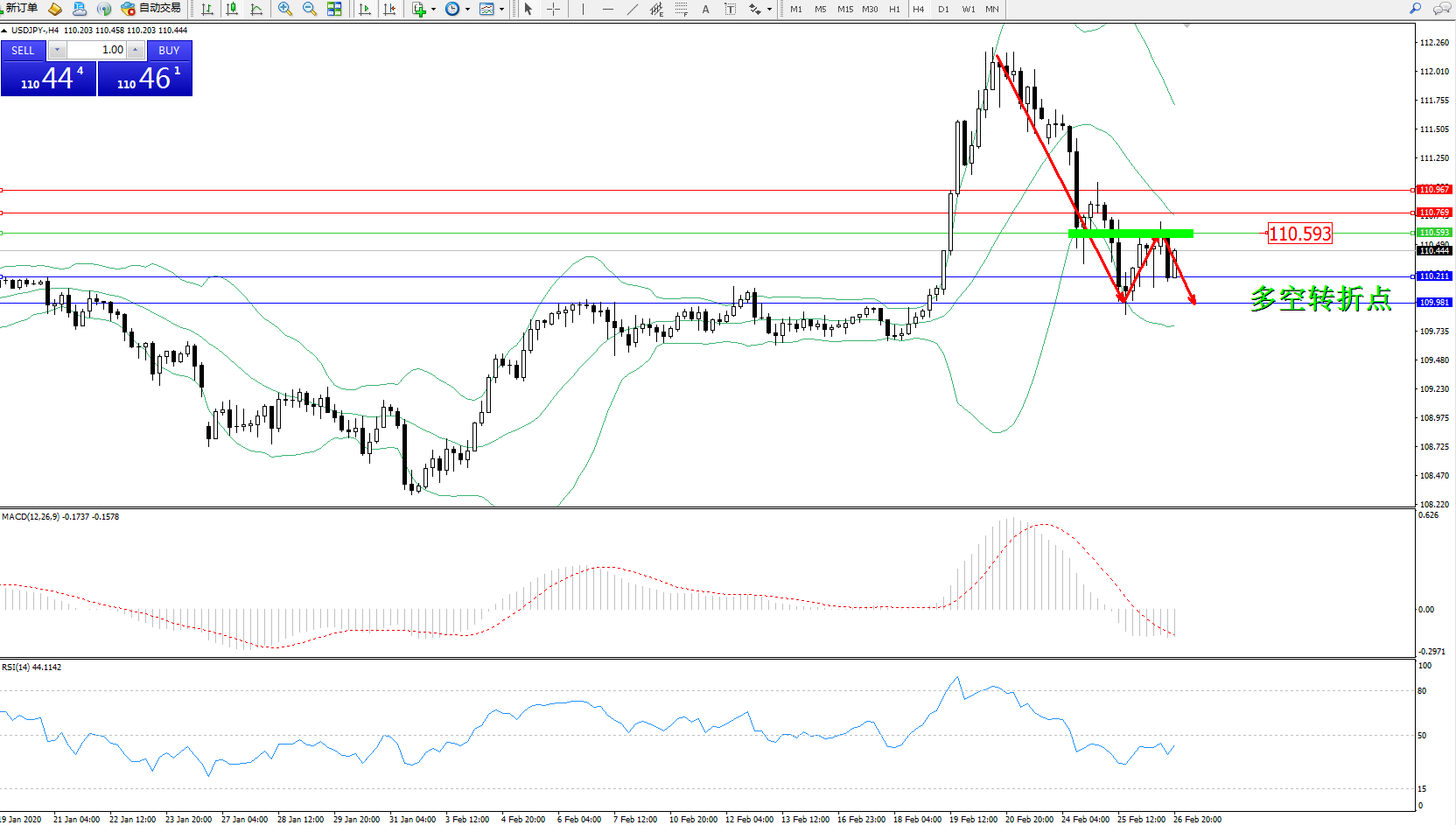 交易策略:110.593下方看跌,目标110.211109.981