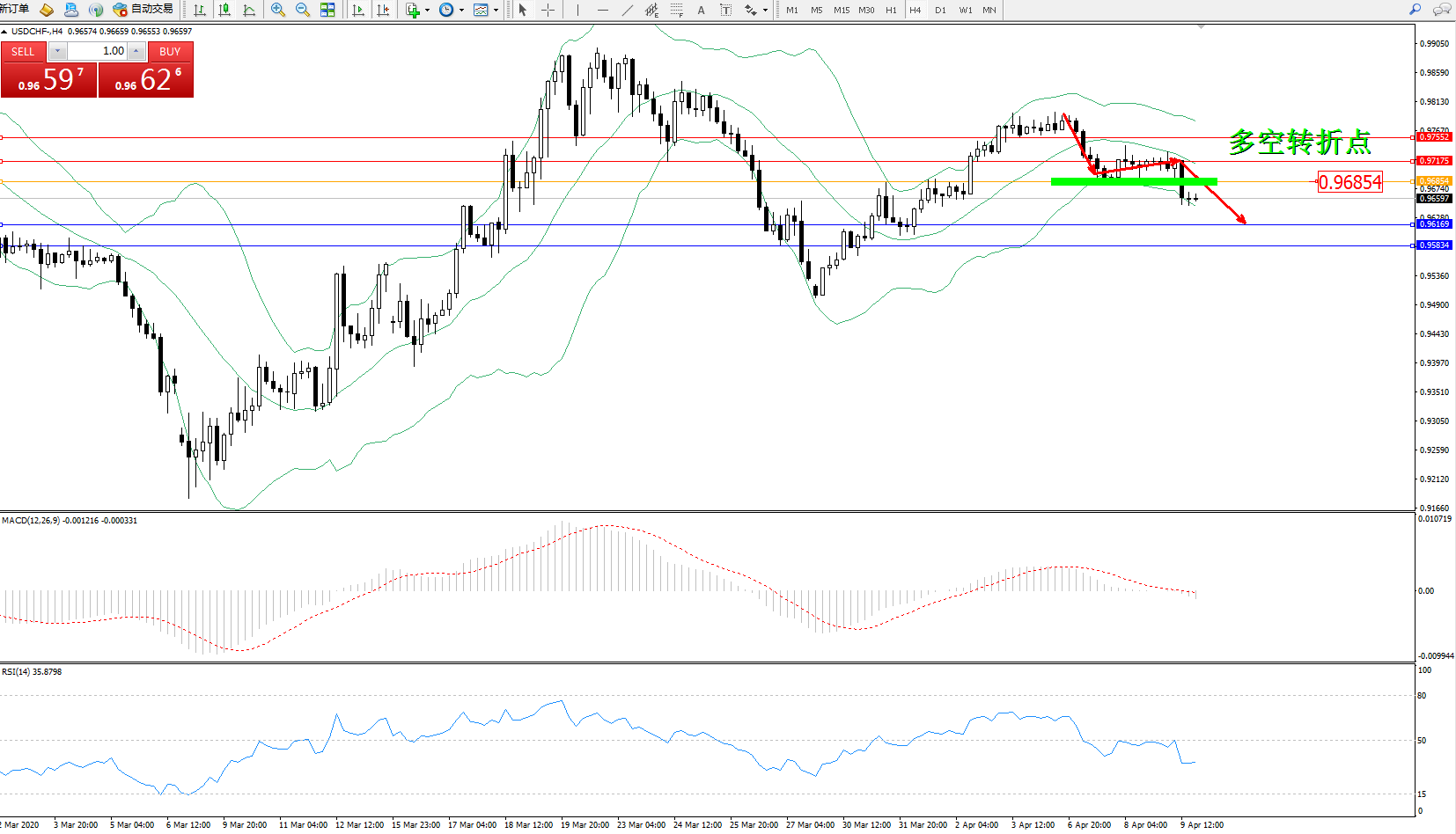 交易策略:0.96854下方看跌,目标0.961690.95834