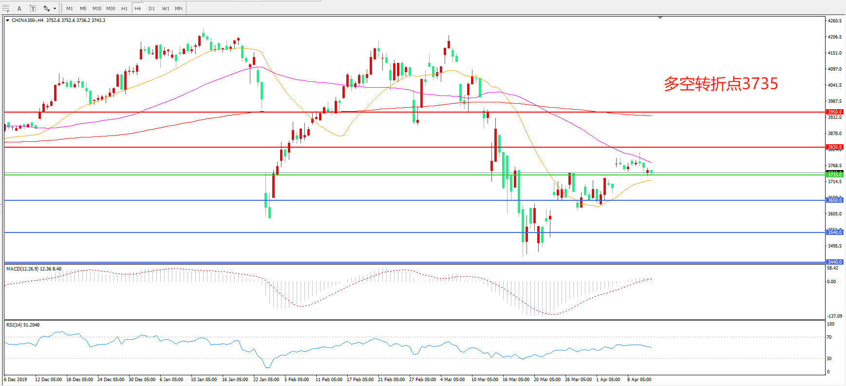 沪深300  CHINA 300   4小时图
