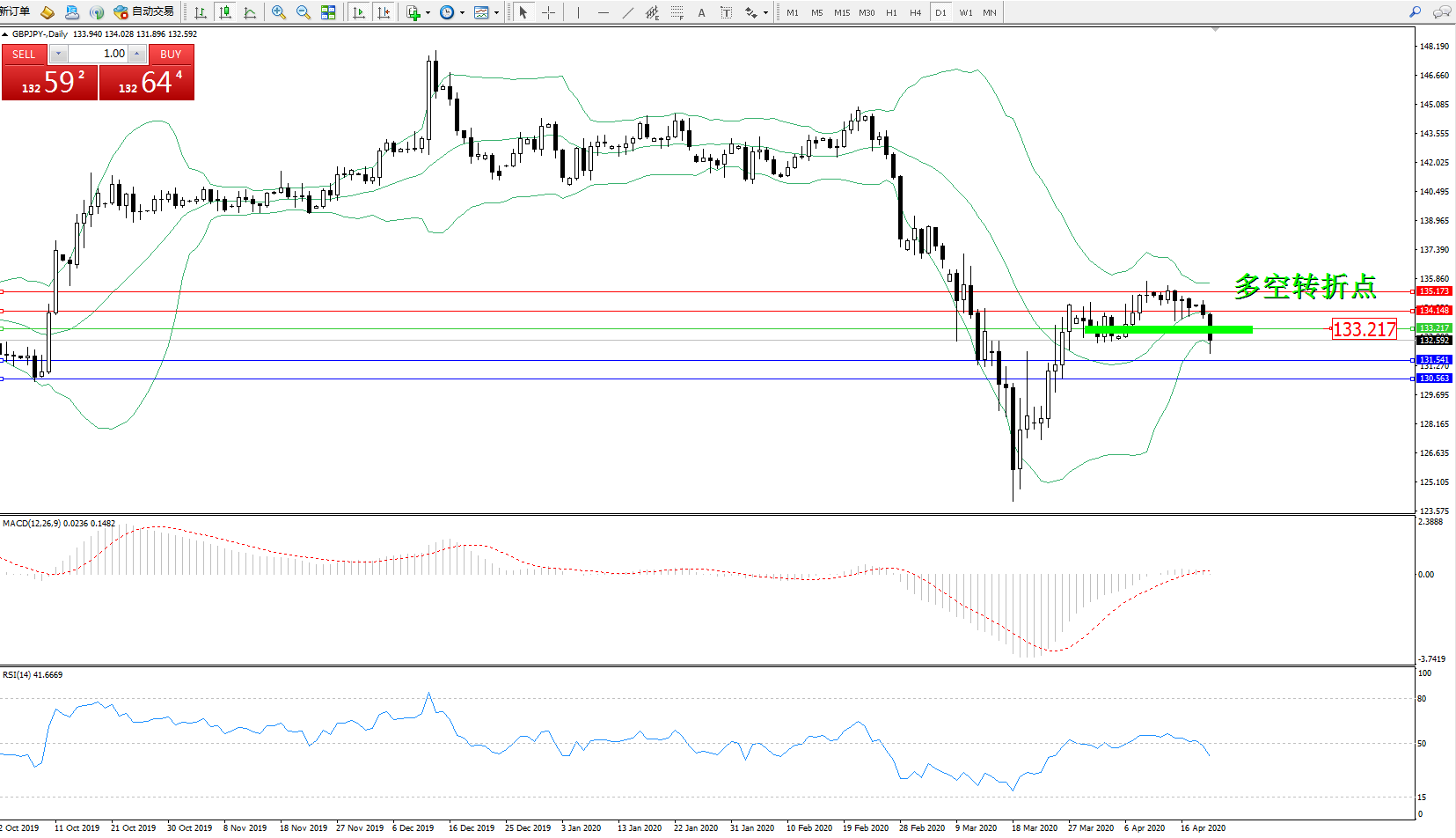 交易策略:133.217下方看跌,目标131.541、130.563