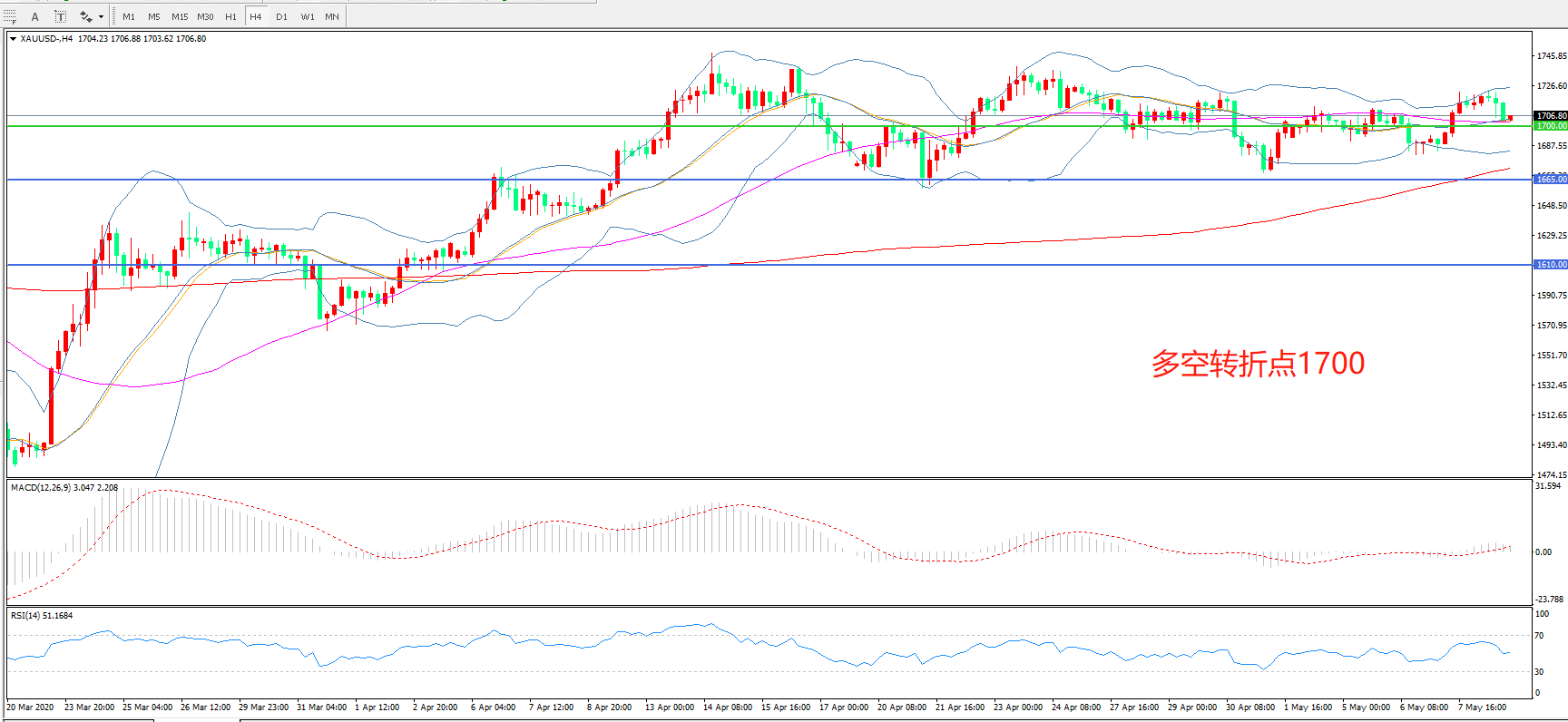 交易策略: 在1700.00 之上看涨,目标1750.00 1785.00