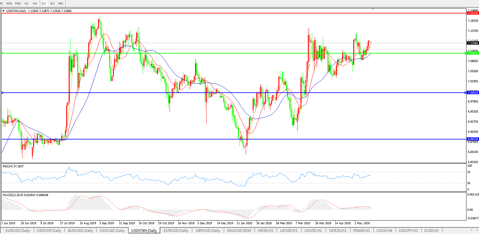 美元兑人民币USDCNH 日线图: