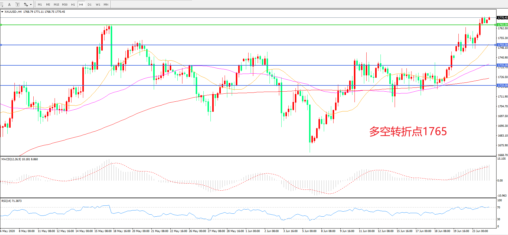 多空转折点:1765.00