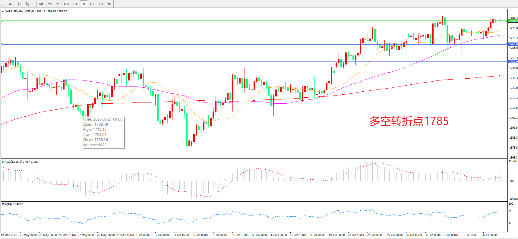 多空转折点:1785.00