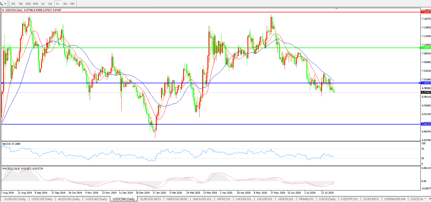 美元兑人民币USDCNH    日线图: