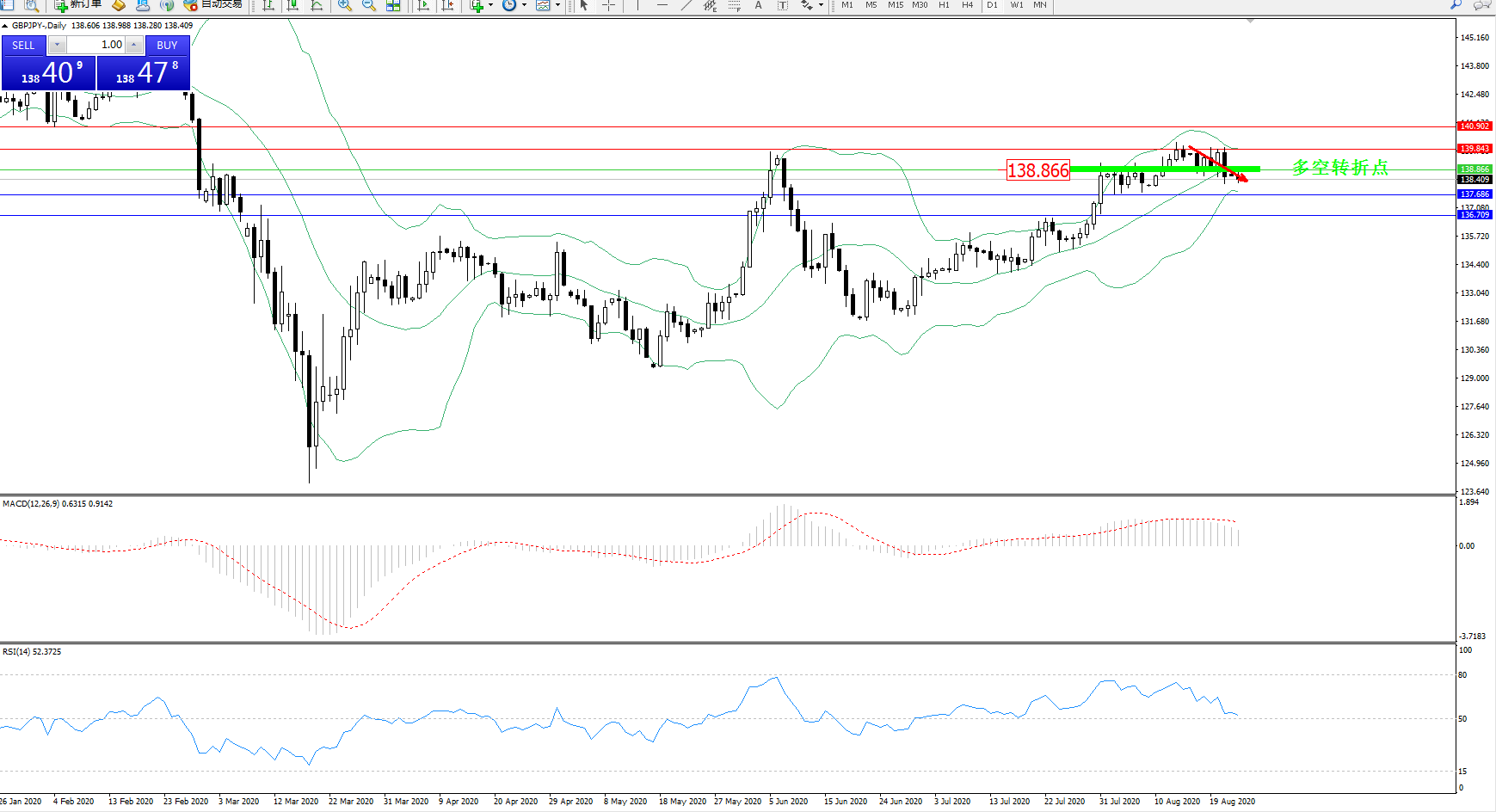 备选策略:138.866上方看涨,目标139.843、140.902