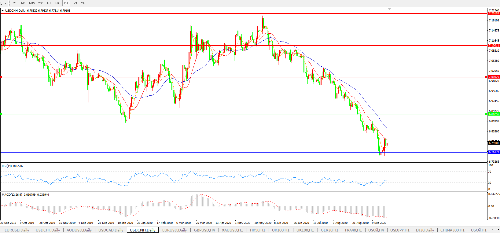美元兑人民币USDCNH 日线图: