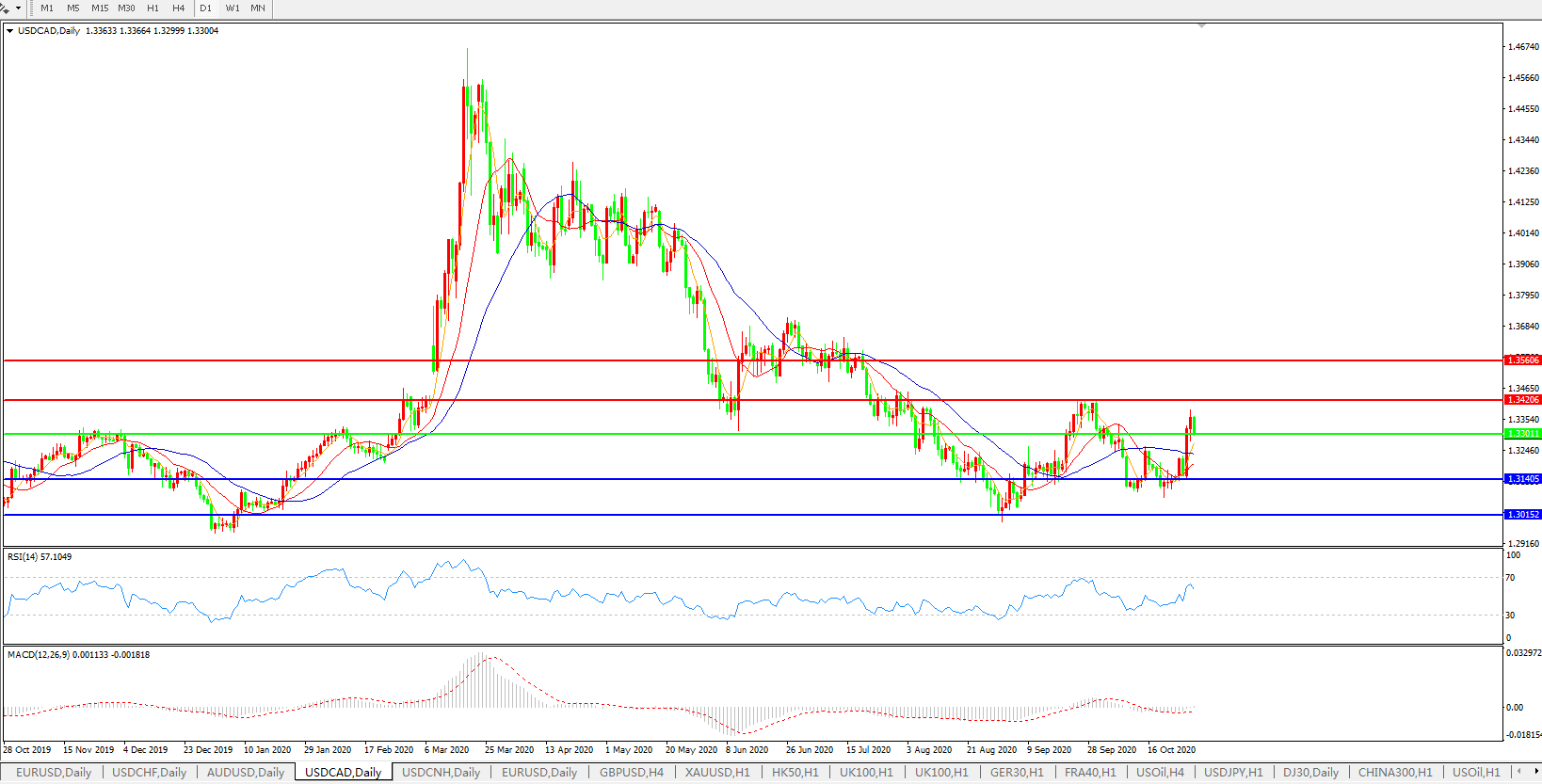 美元兑加元USDCAD    日线图: