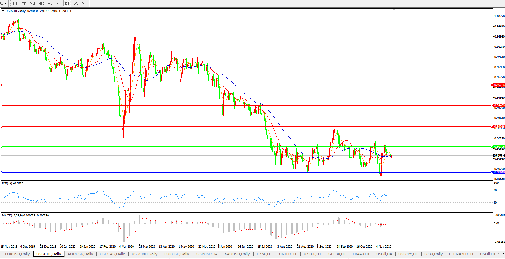 美元兑瑞郎USDCHF    日线图: