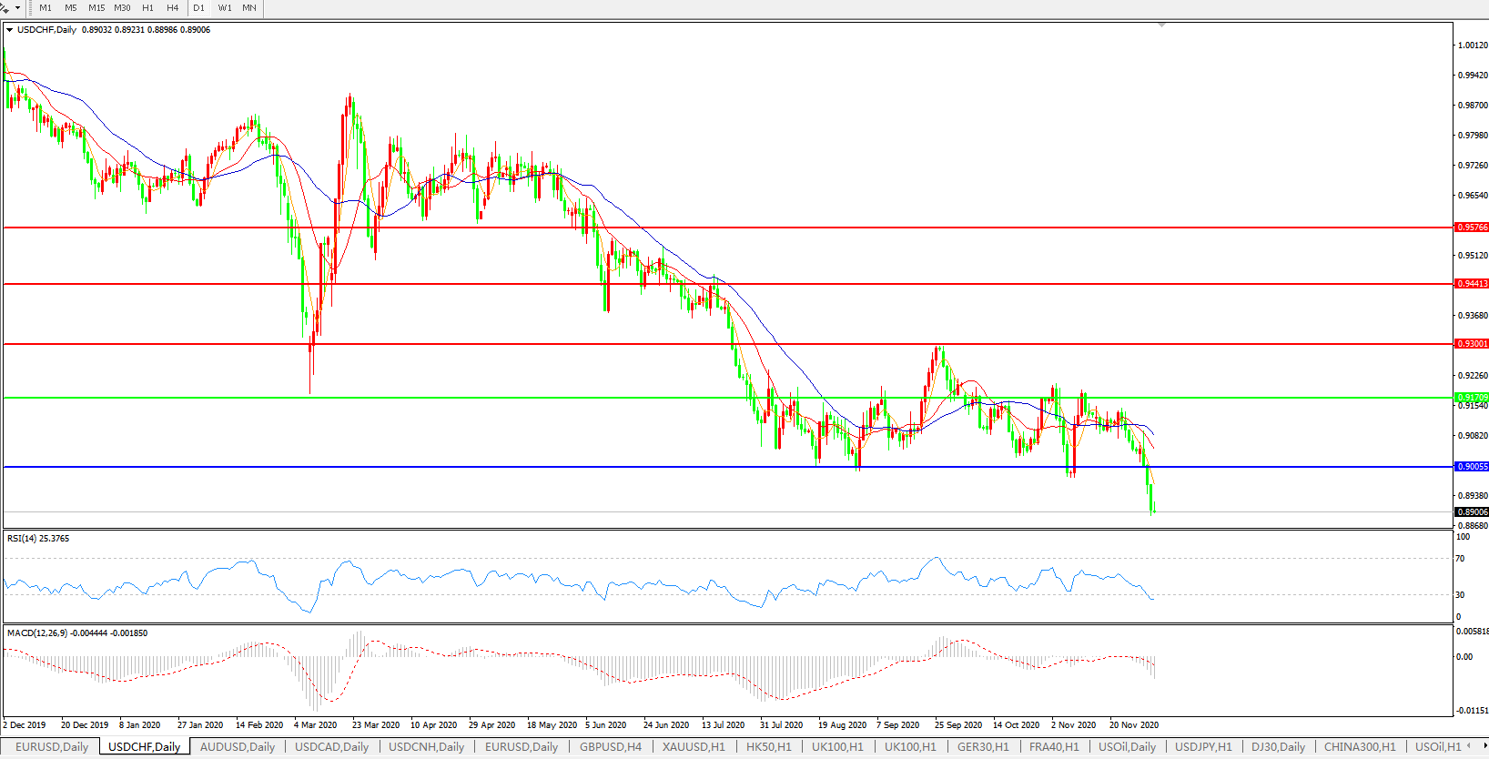 美元兑瑞郎USDCHF    日线图: