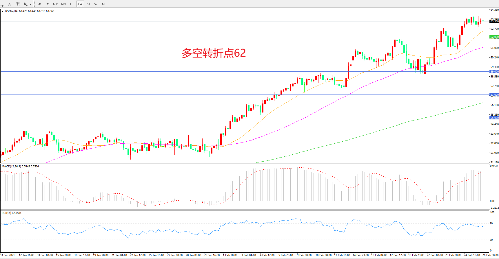 多空转折点:62.00