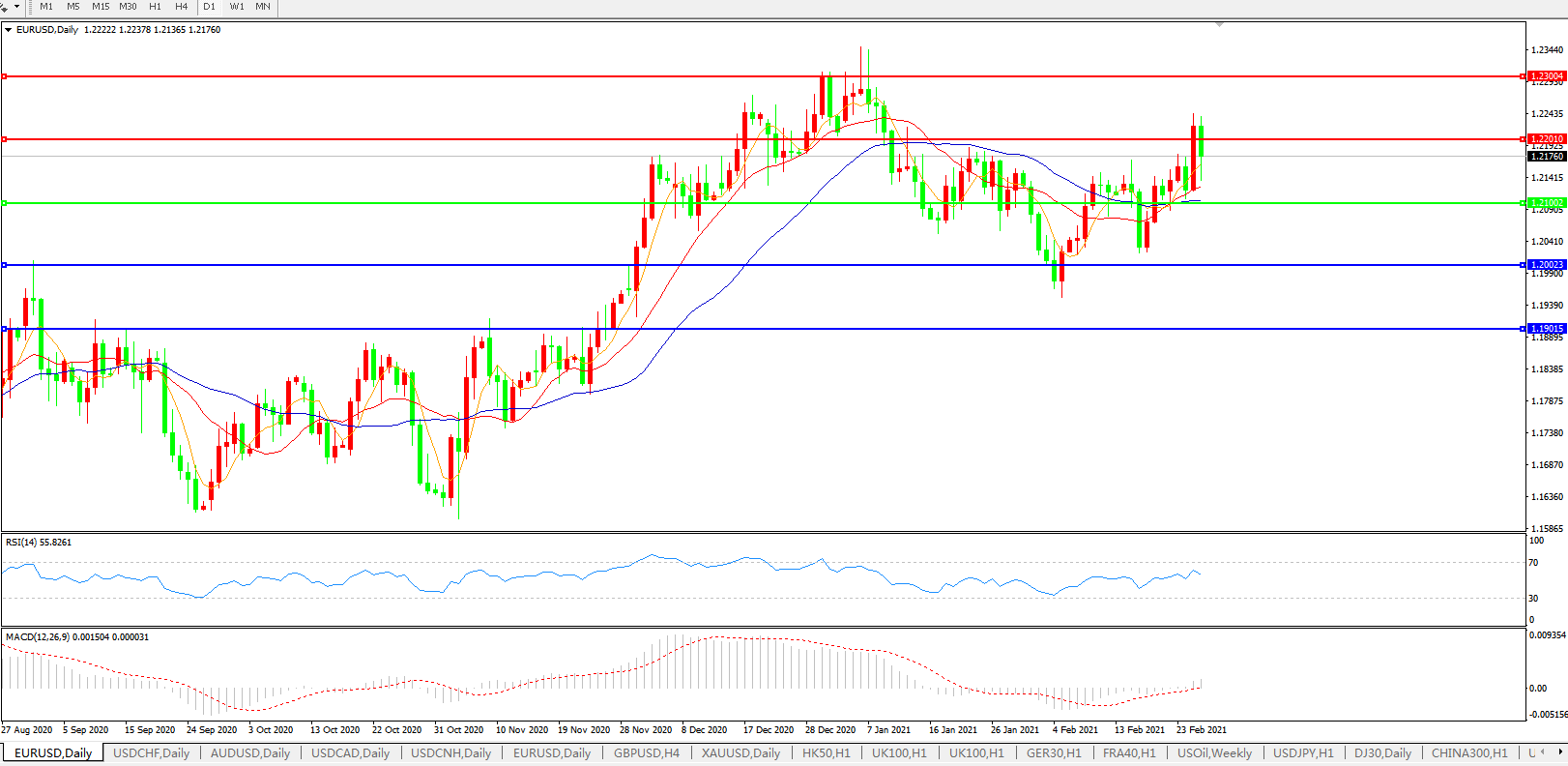 欧元兑美元EURUSD   日线图: