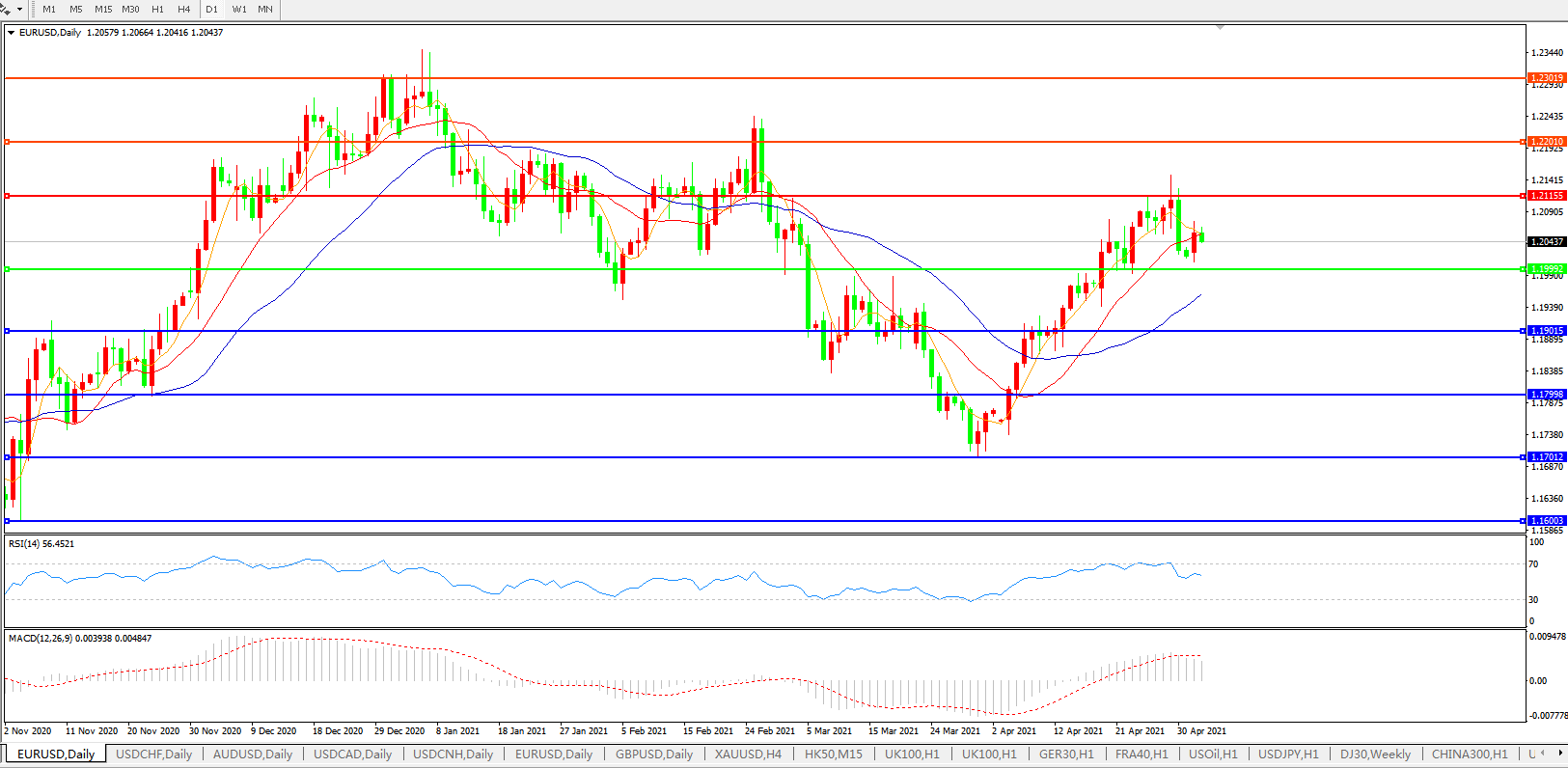 欧元兑美元EURUSD   日线图: