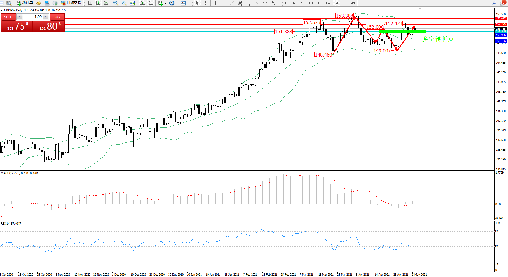 多空转折点:151.388