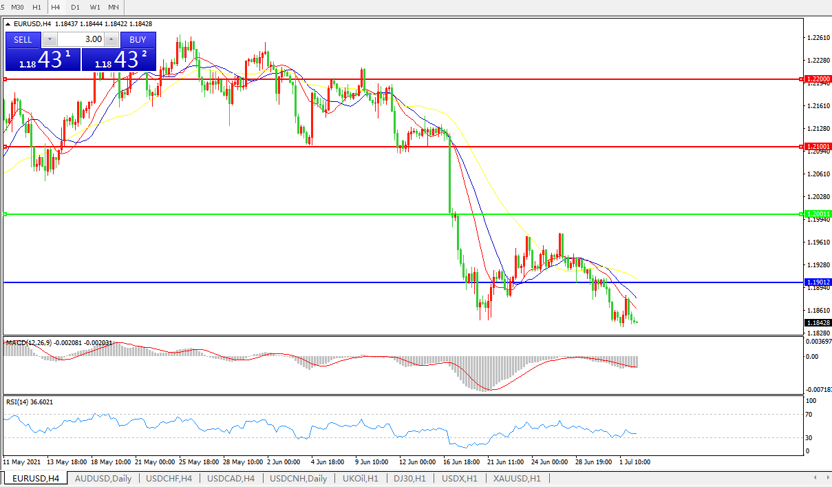 交易策略:1.2000下方看跌,目标1.1900、1.1800