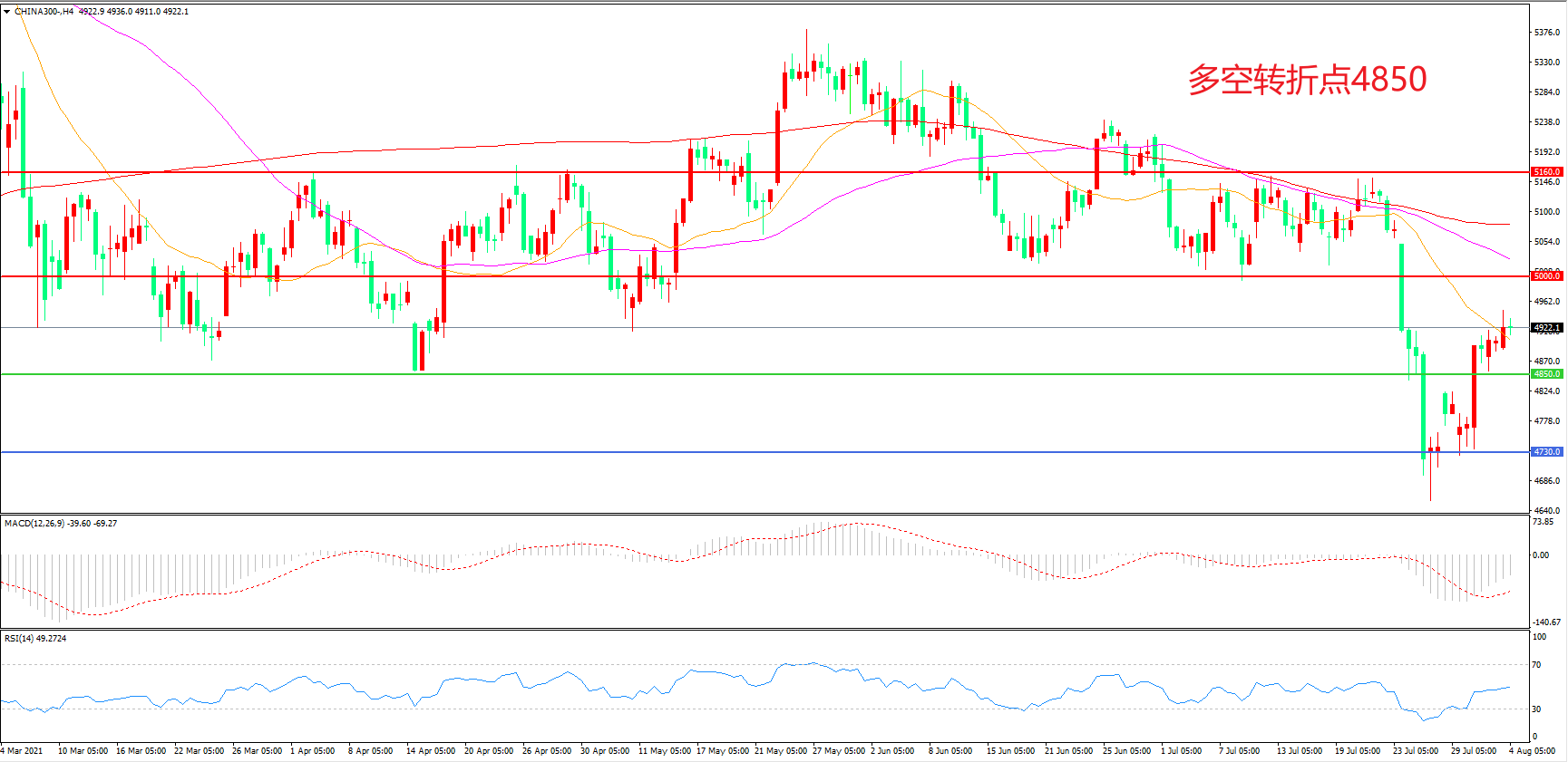 多空转折点:4850.00