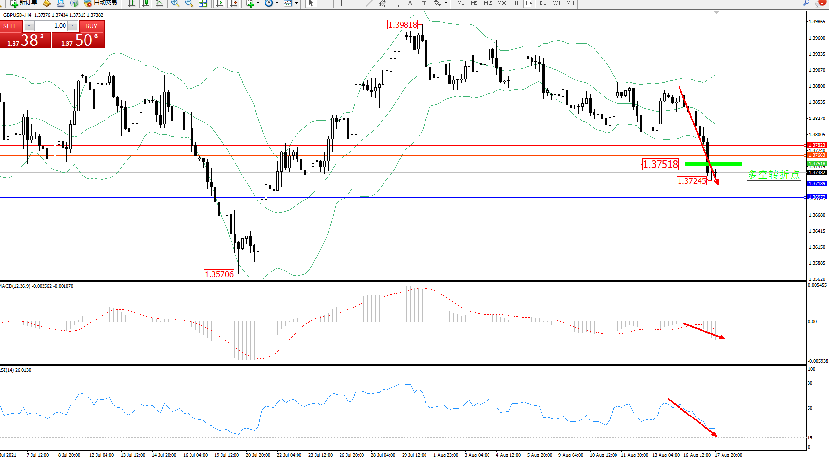 交易策略:1.37518下方看跌,目标1.37189、1.36972