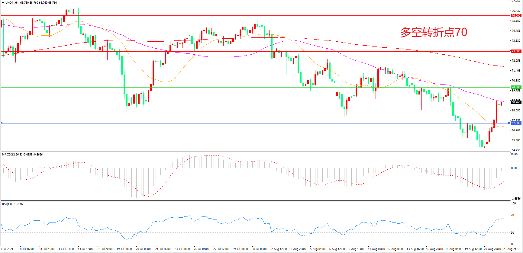 交易策略:在70.00之下看跌,目标67.00 63.00
