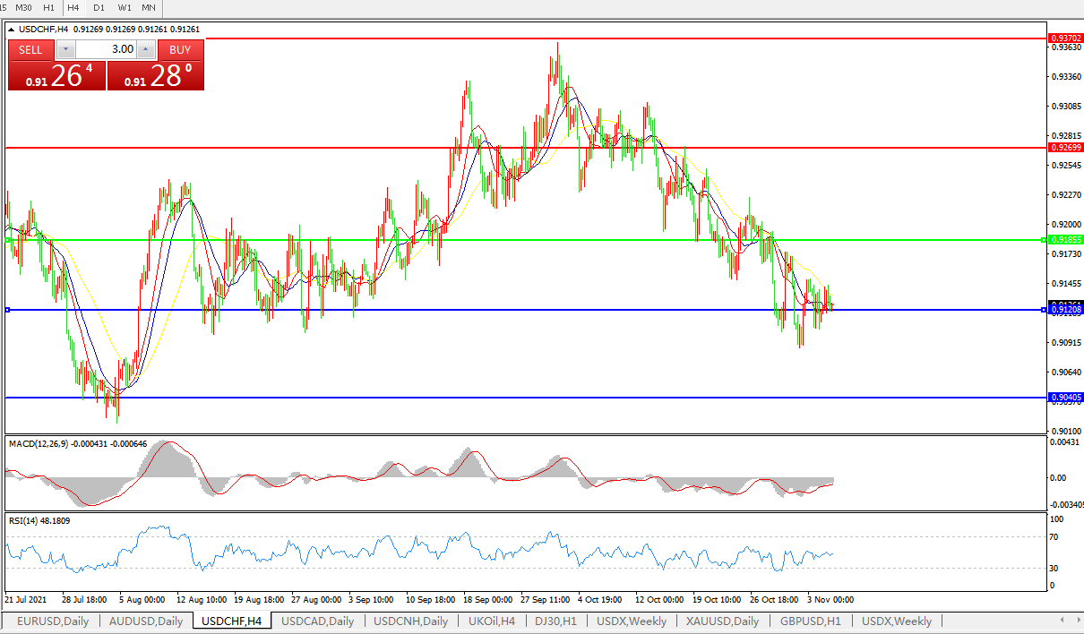 交易策略:0.9180下方看跌,目标0.9120、0.9040