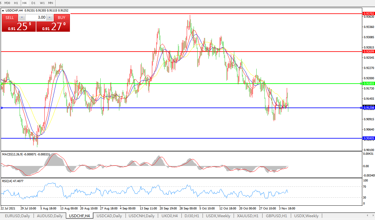 交易策略:0.9180下方看跌,目标0.9120、0.9040