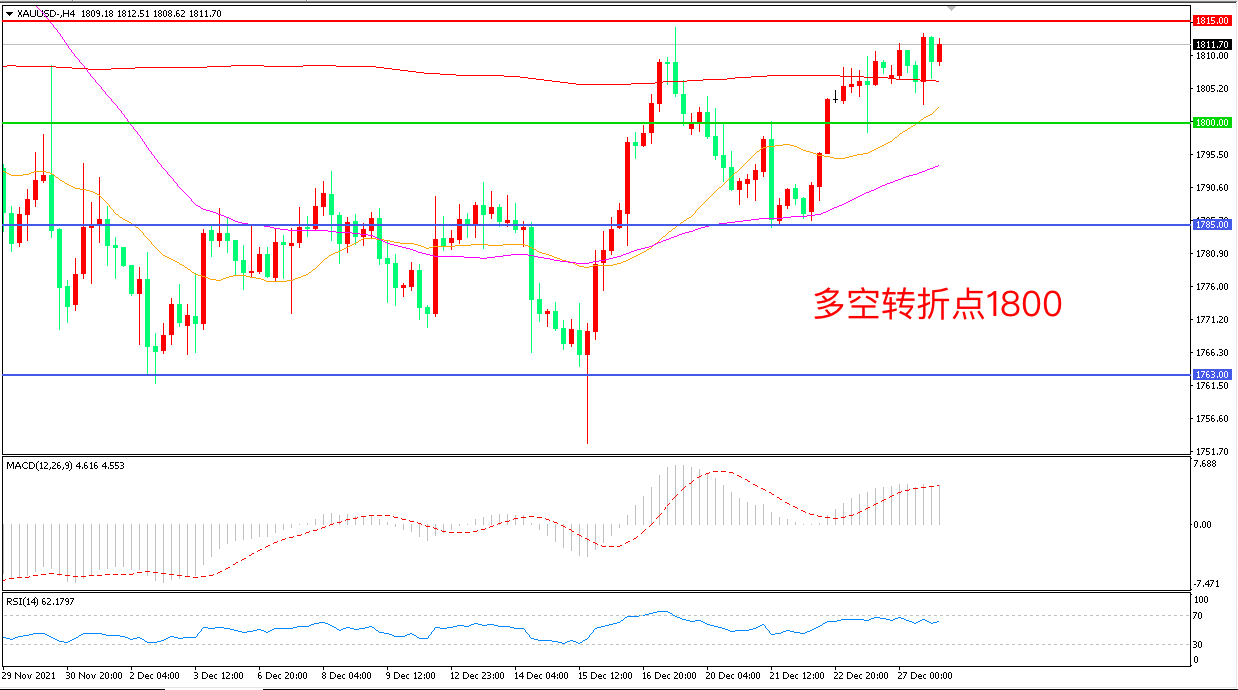 交易策略:在1800.00之上看涨,目标1815.00 1830.00