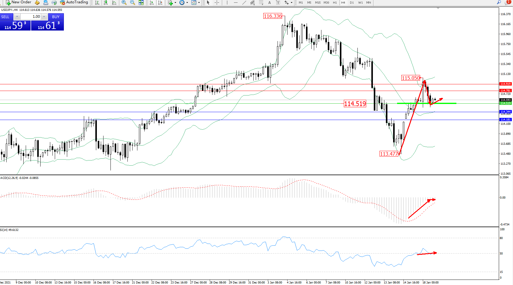 交易策略:114.519上方看涨,目标114.781、114.919