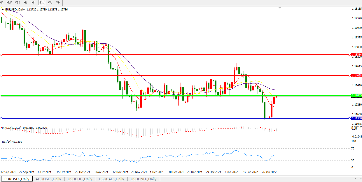 交易策略:1.1280下方看跌,目标1.1140、1.0600