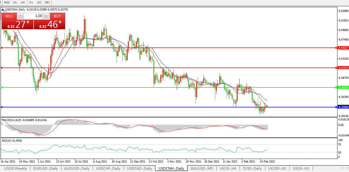 备选策略:在6.3650之上,看涨,目标价位为6.4100,然后为6.4550。