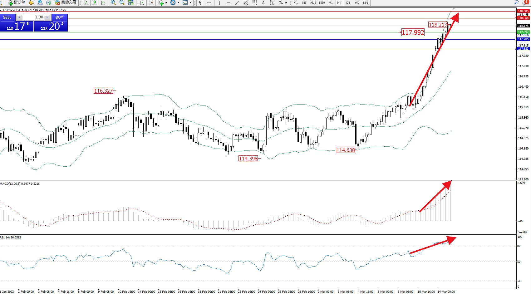 美元兑日圆维持118.175附近震荡,日本央行的鸽派倾向会继续对日元汇率造成打压;而不断上涨的能源成本也将对日本贸易条件产生负面影响,进一步打压日走势。受央行鸽派和大宗商品价格飙升加剧贸易失衡影响,日汇率有望进一步下滑;市场分析认为,与预期的美联储加息相比,日本央行的鸽派倾向会继续对日汇率造成打压。而不断上涨的能源成本也将对日本贸易条件产生负面影响,从而进一步打压日走势。美联储将在本周召开货币政策会议,市场普遍预计美联储将在本次会议上开启加息。相比之下,日本央行将在本周的会议上保持鸽派立场,因为政策制定者试图推动该国从疫情中疲弱的经济复苏。