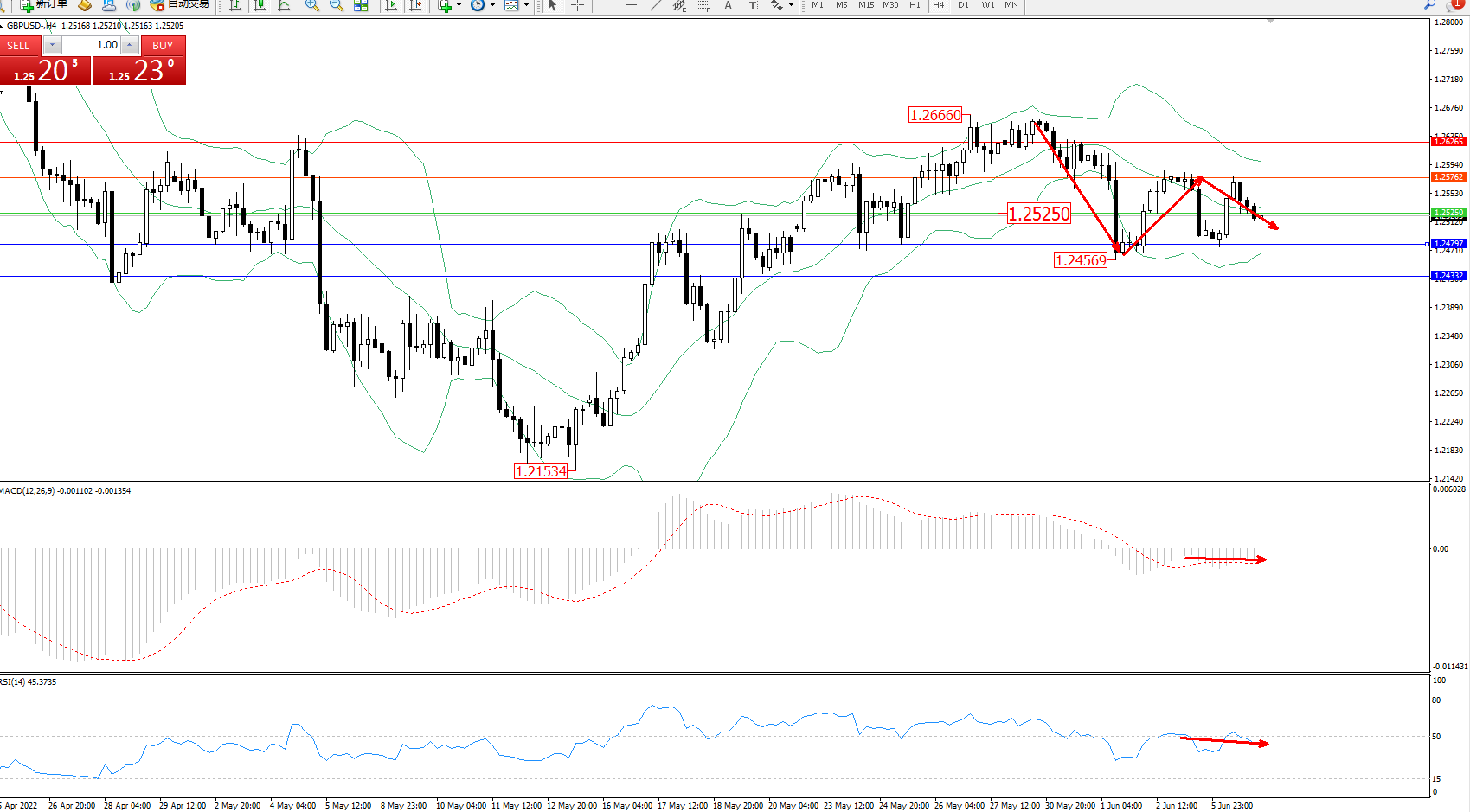 交易策略:1.25250下方看跌,目标1.24797、1.24332