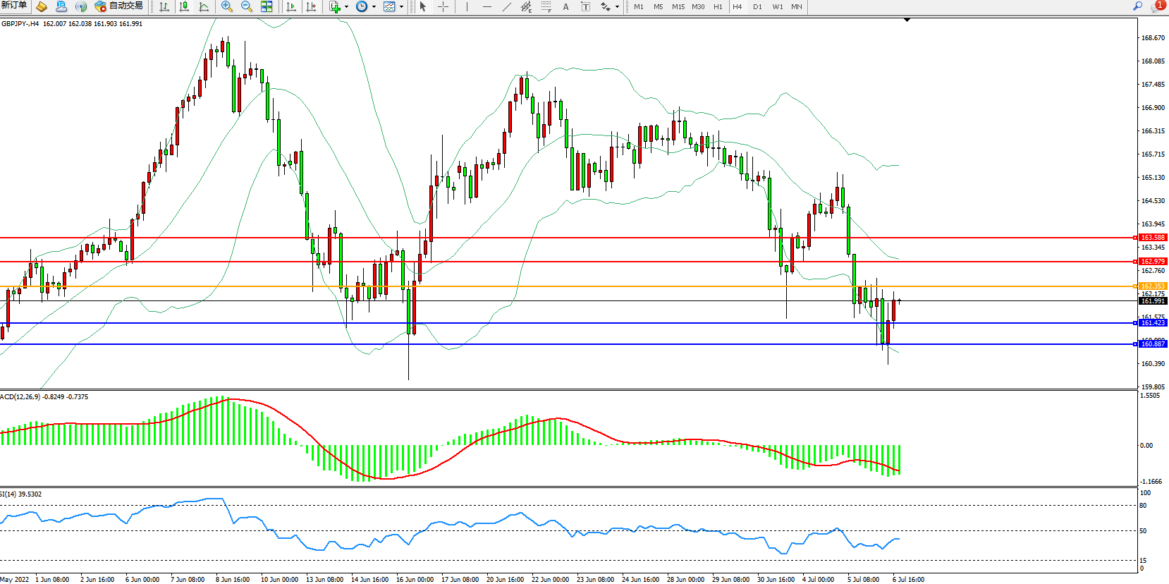 备选策略:162.353上方看涨,目标162.979、163.588