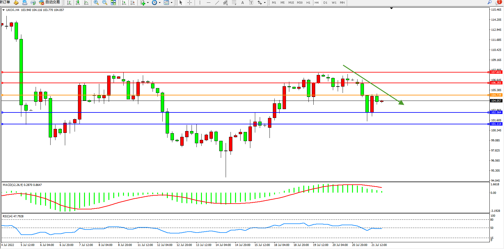 布油UKOil——4小时K线图显示: