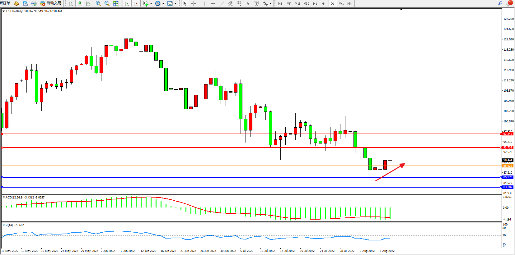 交易策略:88.928上方看涨,目标93.738、97.242