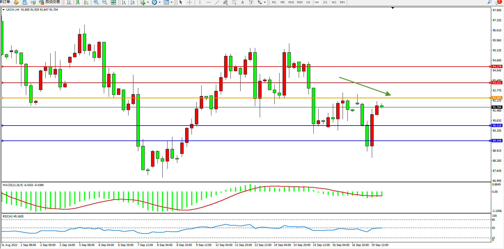 布油UKOil——4小时K线图显示: