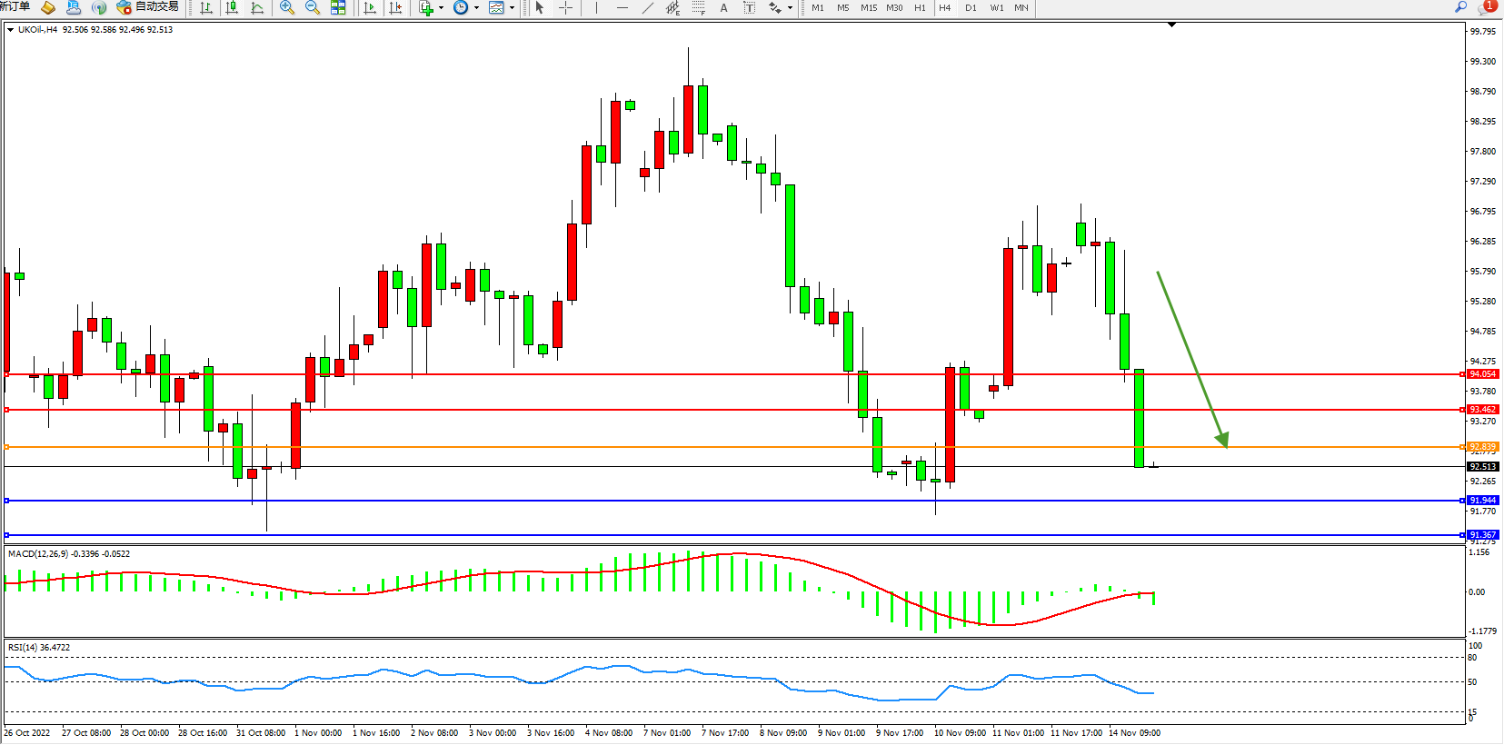 布油UKOil——4小时K线图显示: