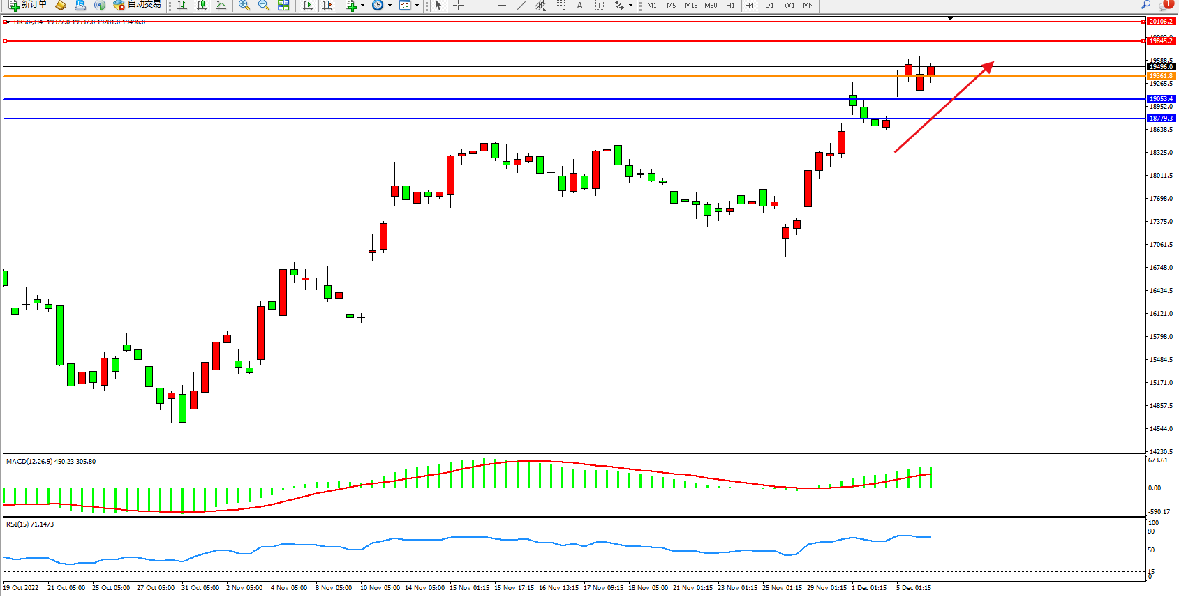 恒指HK50 4小时图