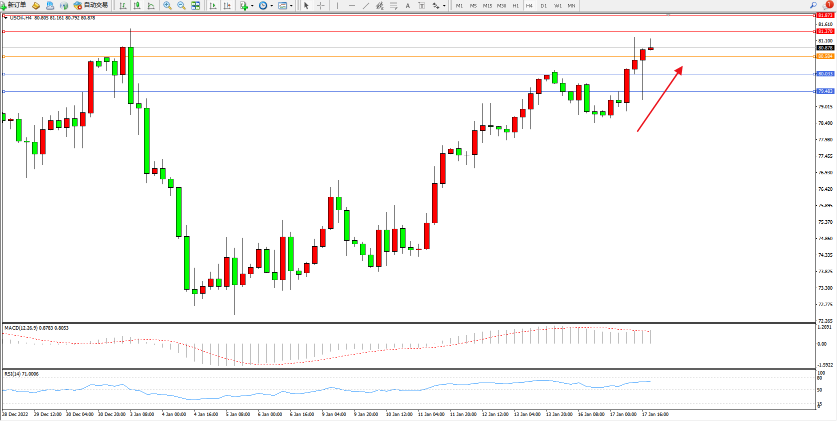 交易策略:80.584上方看涨,目标81.370、81.873