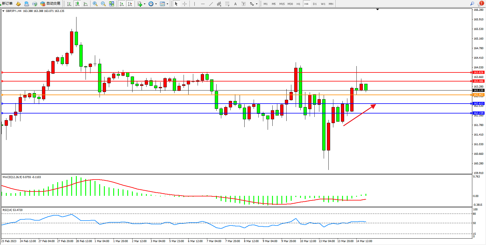 交易策略:162.953上方看涨,目标163.486 163.826